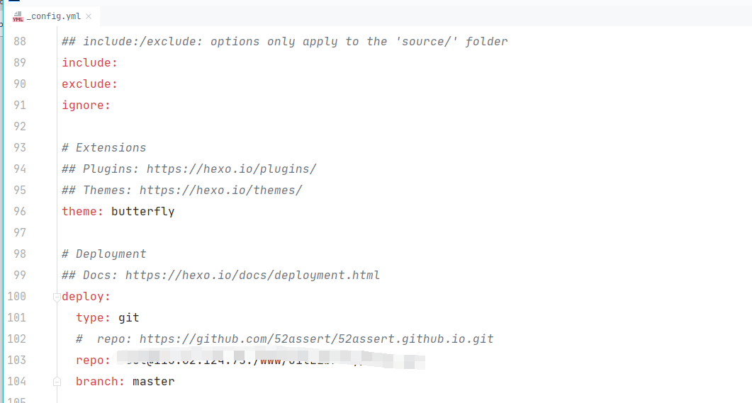 _config.yml文件,也就是博客的配置文件修改depoly配置